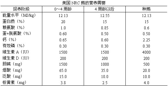 鹅的饲养标准