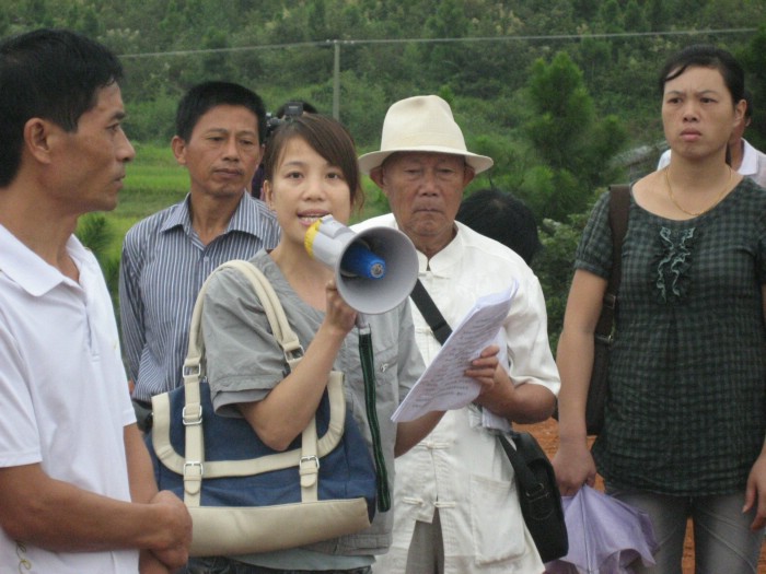 左边是工厂新址所在地国桥村的范村长: