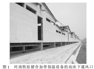 2.1.3.猪舍内各个部位的温度是不同的,两头温度稍低中间温度稍高,从地面至顶部温度由低向高发展,低温空气向高温处流动形成风。屋顶部一般都存积大量热气、废气和湿气,建议设置适量天窗加强通风,人为形成自下而上的通风和换气。传统猪舍采取1米以上中部开窗的办法是违反规律的,因开窗的目的是为猪舍通风降温和排除地面废气,应该尽量把通风窗开至地面(见图1)。