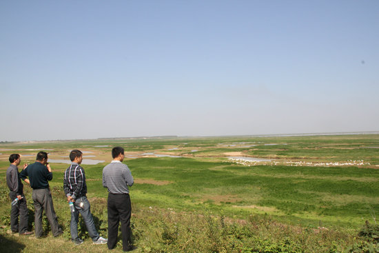 鄱阳湖边上,远处是赵老板的大鹅放养场所