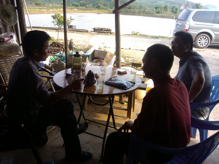 公司营销部负责人王波赴广东海南市场考察(右一在虾农场)