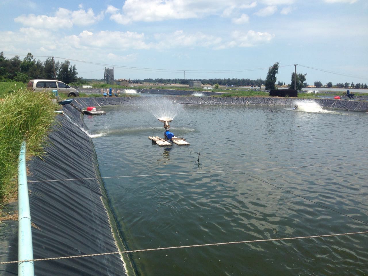 然后从蓄水池中引进消毒后的水,使水位达到1.5~2.5米深(内地淡水区则是先只加0.6米水深,后面慢慢来加深水位);开增氧机去除余氯2天后(急的可以用1~2公斤大苏打即硫代硫酸钠/亩,化学消毒余氯),然后进入培菌培藻-和放苗阶段;