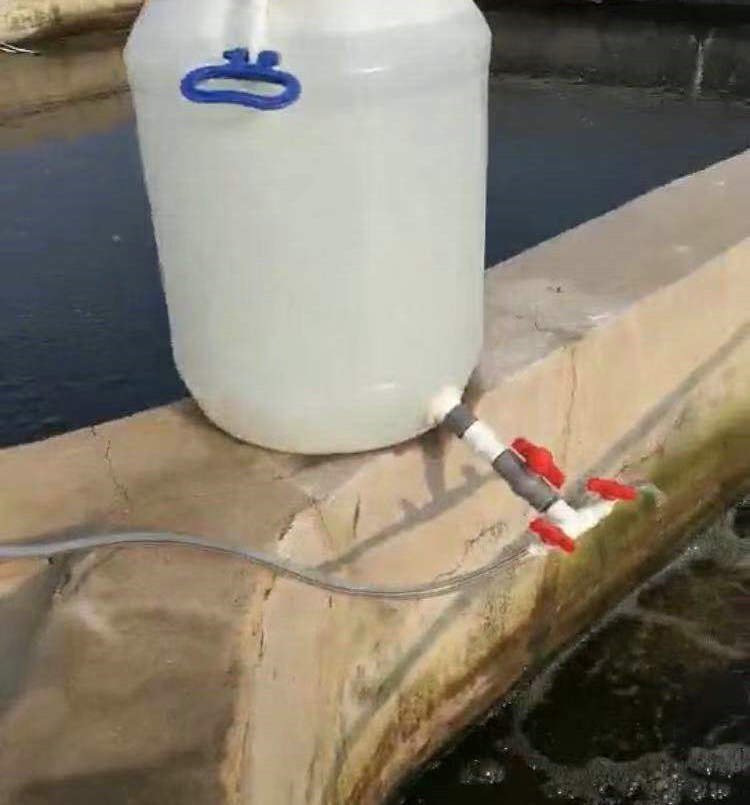 现在假设您没办法,又没有循环水设备,只好用生物絮团法,那么如何来确保滴加均匀,每一个池子滴加量的精准呢?