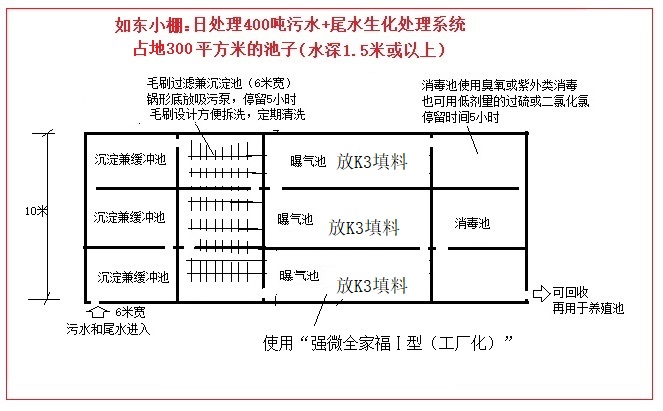 全家福Ⅰ型(工厂化)”5克/立方米):里面放K3填料进行曝气,K3填料上将来会挂膜,效率更高